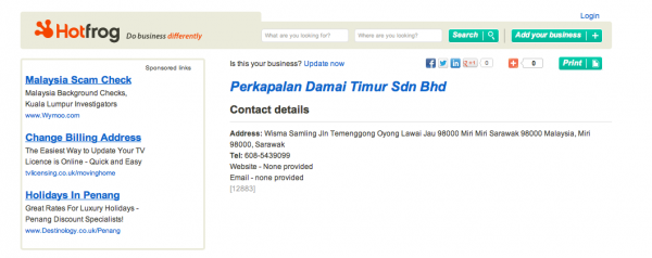 This means that Hamed Sepawi is a key shareholder in Samling through PDT and Samling is a key investor in PDT’s own ventures. Indeed investigators have pointed out that PDT and Samling Strategic Corporation are given the same address in one Malaysian online directory: